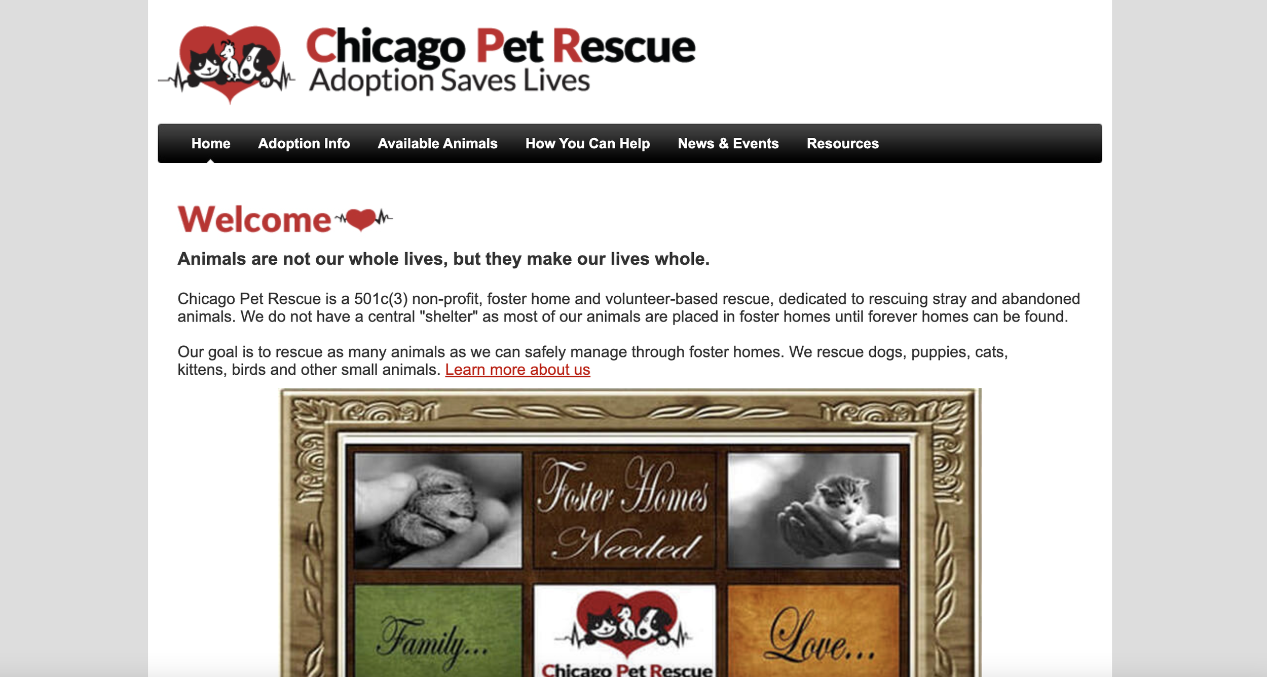 The Chicago Pet Rescue website was cluttered and in need of updating. The site needed to focus on adoption as its main goal and encourage more foot traffic.