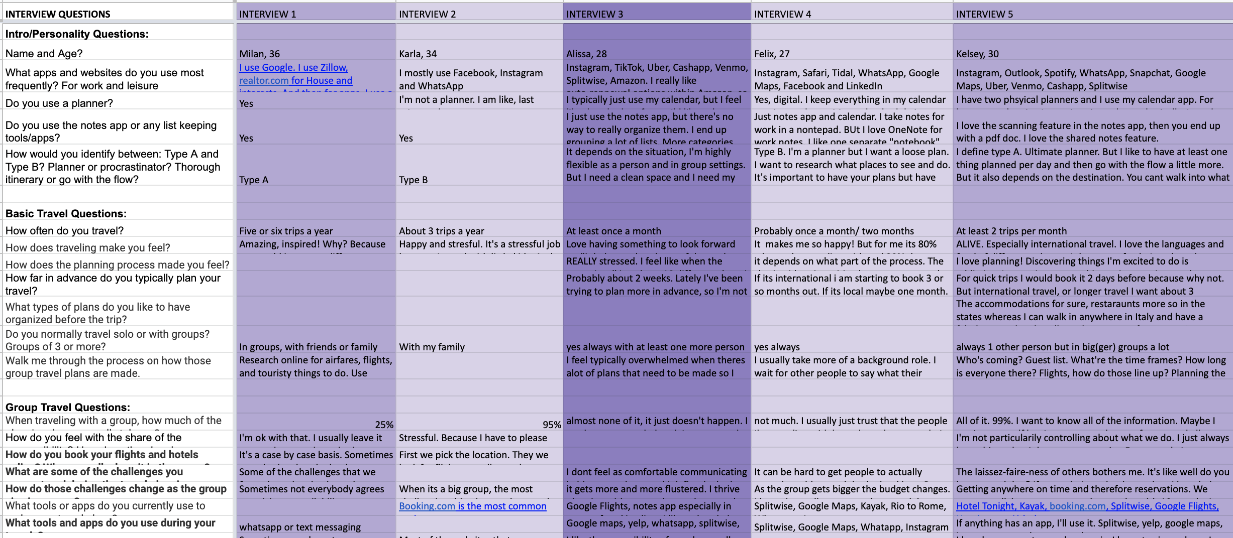 We conducted user interviews to identify the challenges people face while making group travel plans