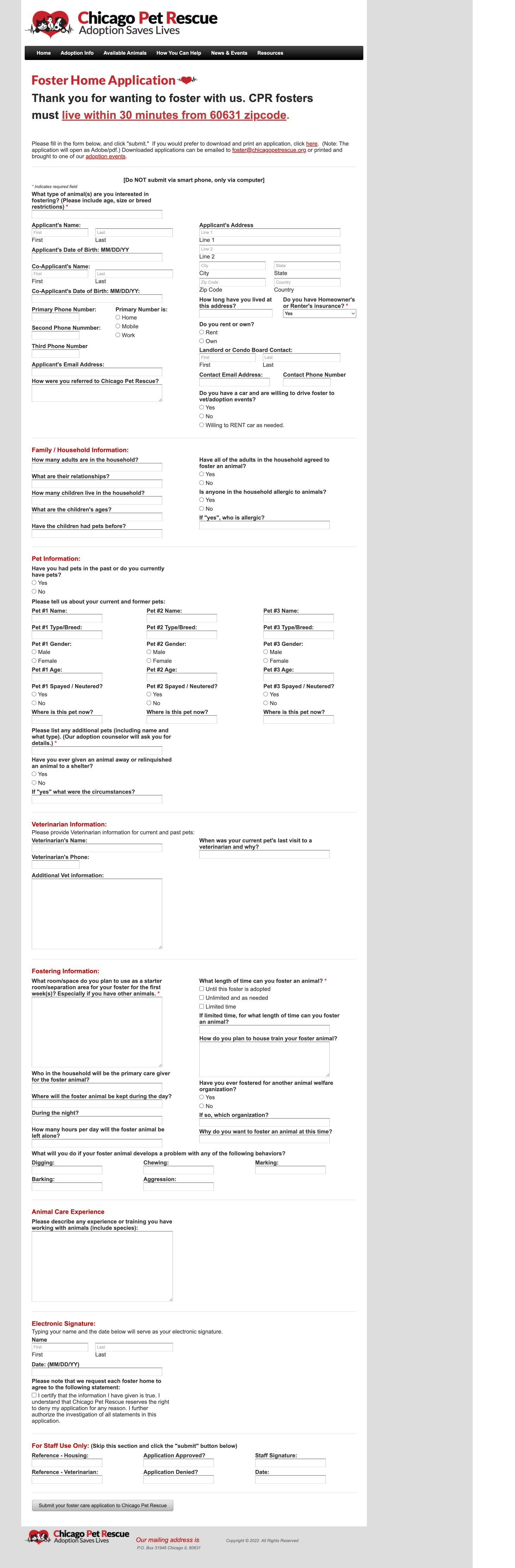 From an extra-long adoption application form that took 8 scrolls to a simplified form with saving options and only 4 clicks!