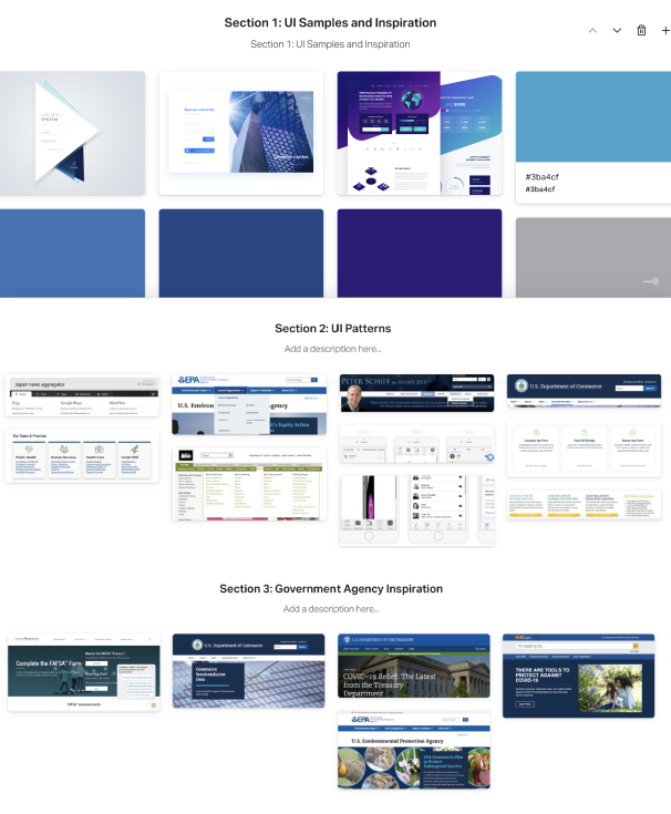 We gathered design ideas from other government agencies that were used to inspire and inform our solution and lead us to originality.
