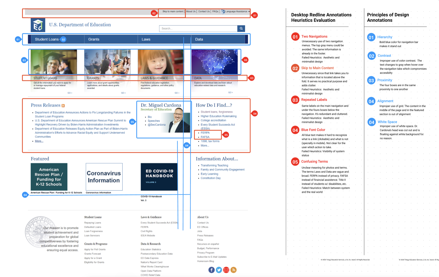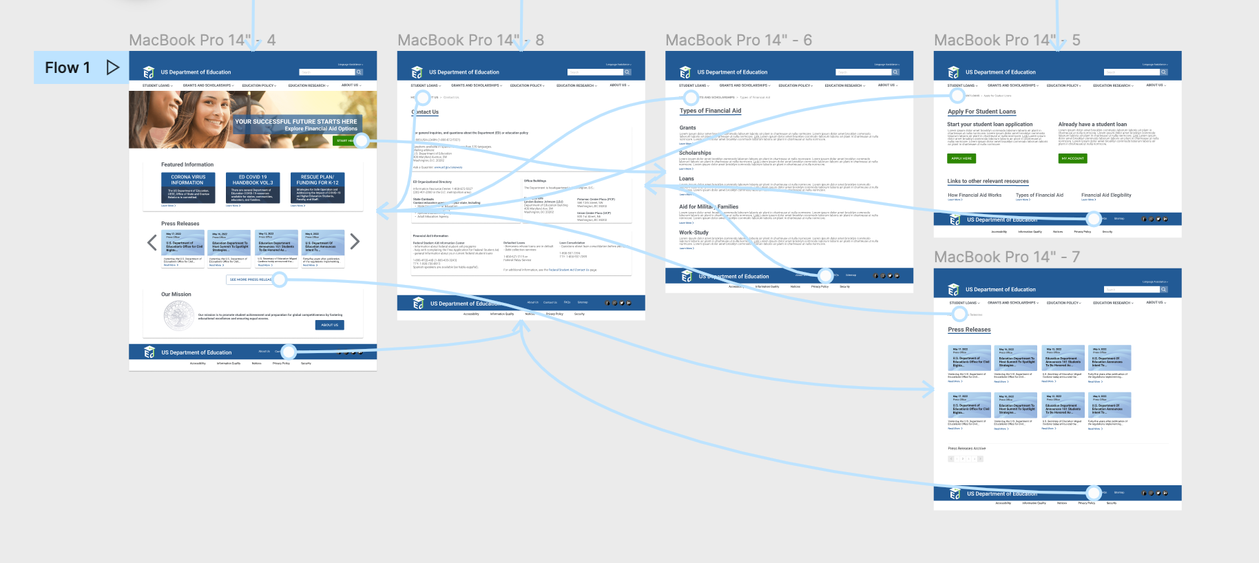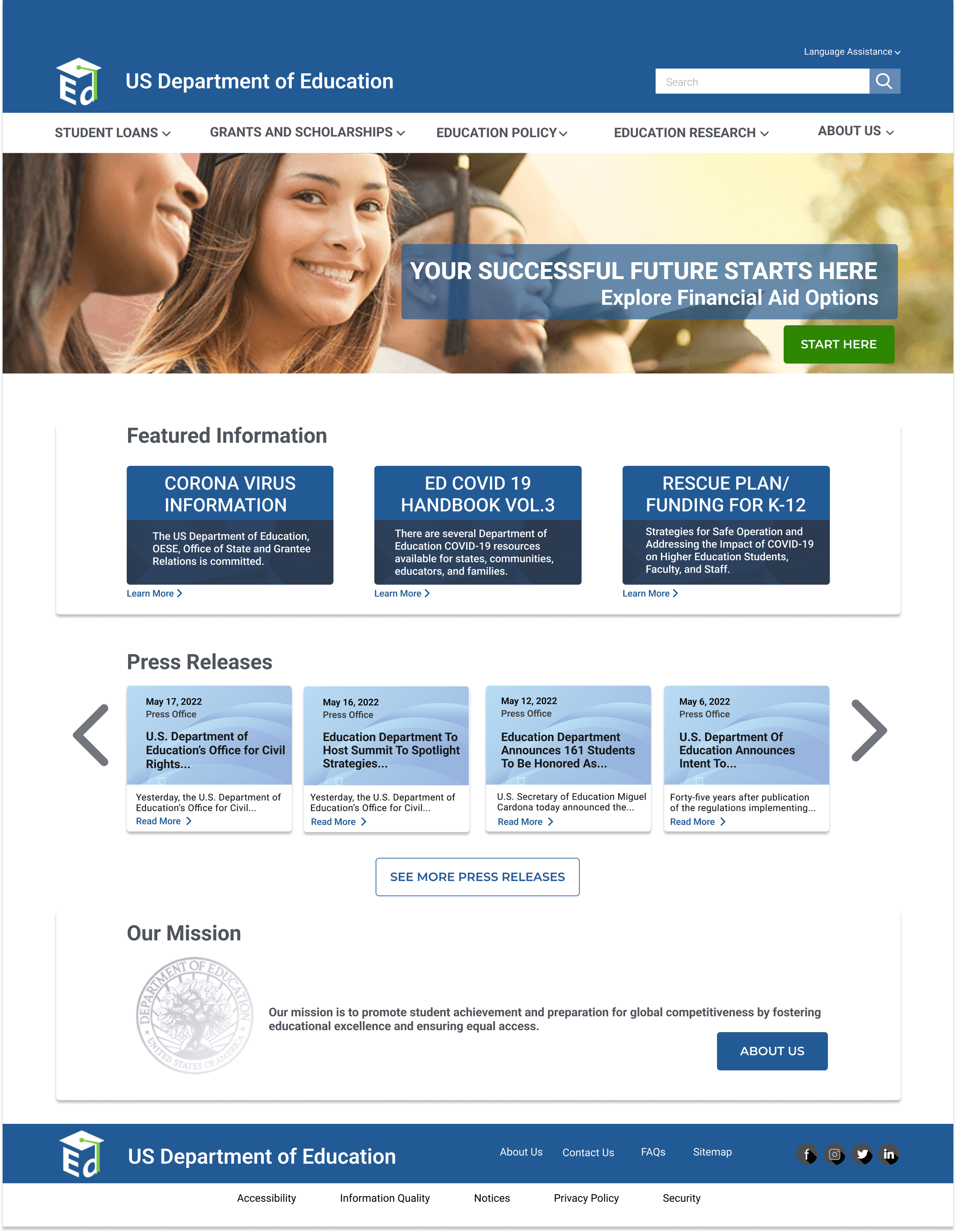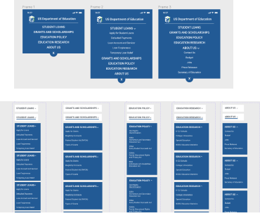 When navigating the US Department of Education website users encountered frustration with the overwhelming amount of disorganized information and visual clutter. They struggled to navigate the site because of many broken links, confusing jargon and headers, outdated information, and unclear links and flow. The main objective of this project was to provide the user with a clear and balanced path that will allow them to effortlessly find the information they are looking for. We solved this problem by establishing an information hierarchy, eliminating redundancy, simplifying the navigation, and applying aesthetic and minimalist design to a new user interface.