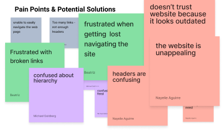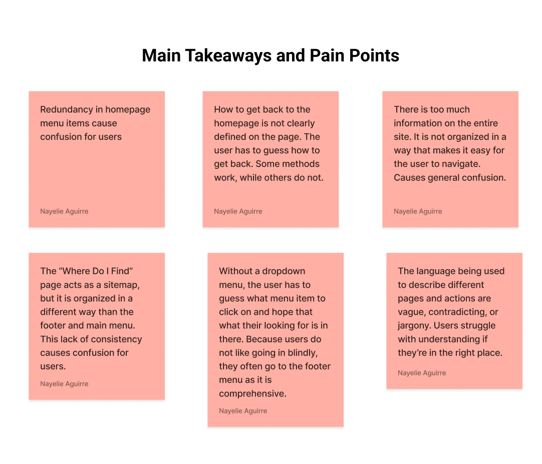 Users were frustrated with the overwhelming amount of disorganized information and visual clutter. They struggled to navigate the site because of many broken links, confusing jargon and headers, redundant information, and unclear links and flow.
