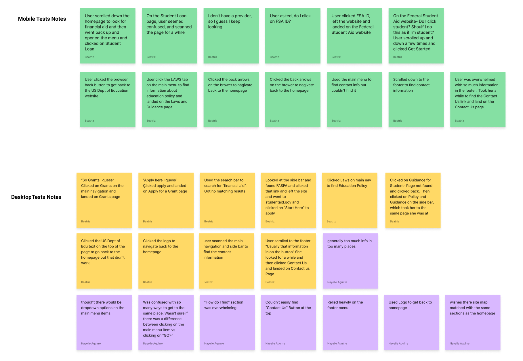 USER TESTING NOTES